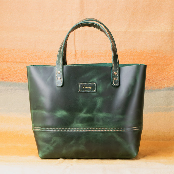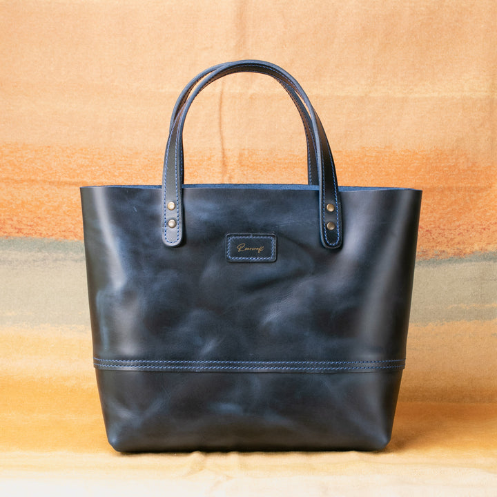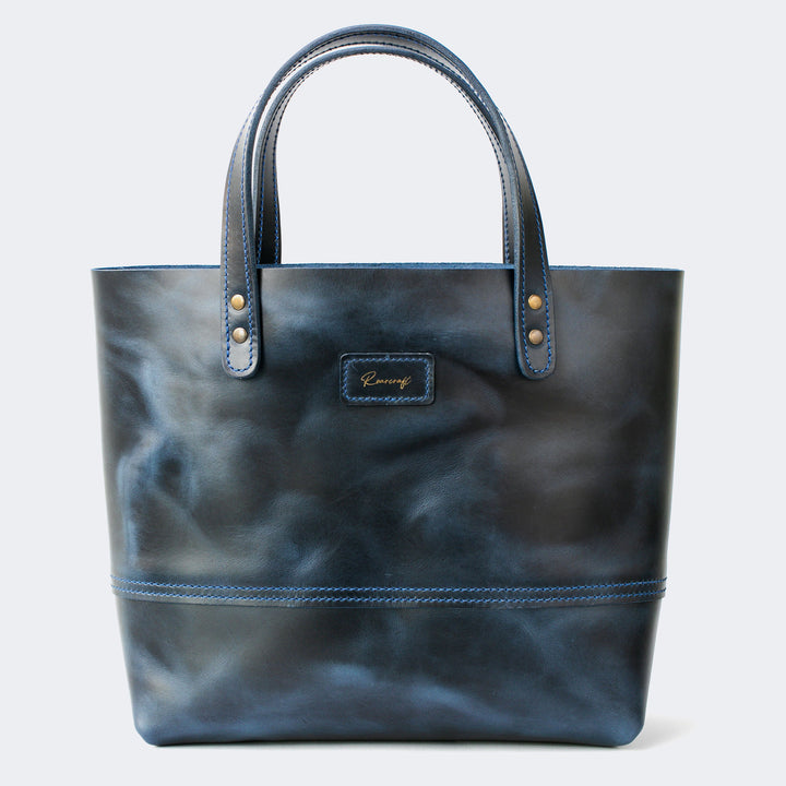 Its spacious main compartment can hold a 15" laptop and has two matching top handles for easy use. Crafted from full-grain calf leather, this Tote bag has the room and structure for all your day to day to day essentials.