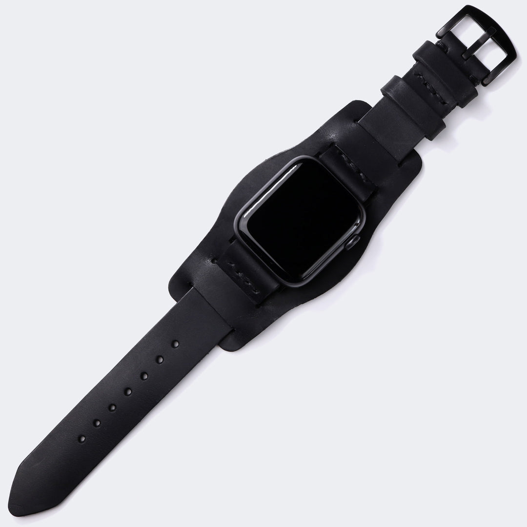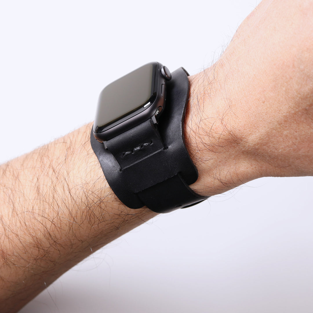 This flat, stitchless design complements the minimal look of Apple Watch series. Single layered leather watch strap with bund piece.