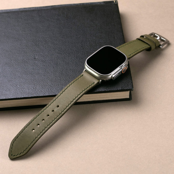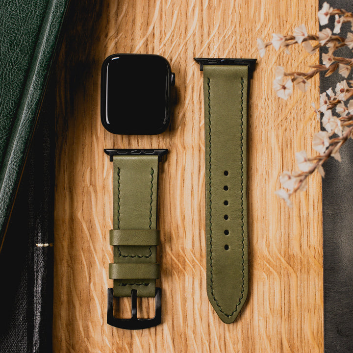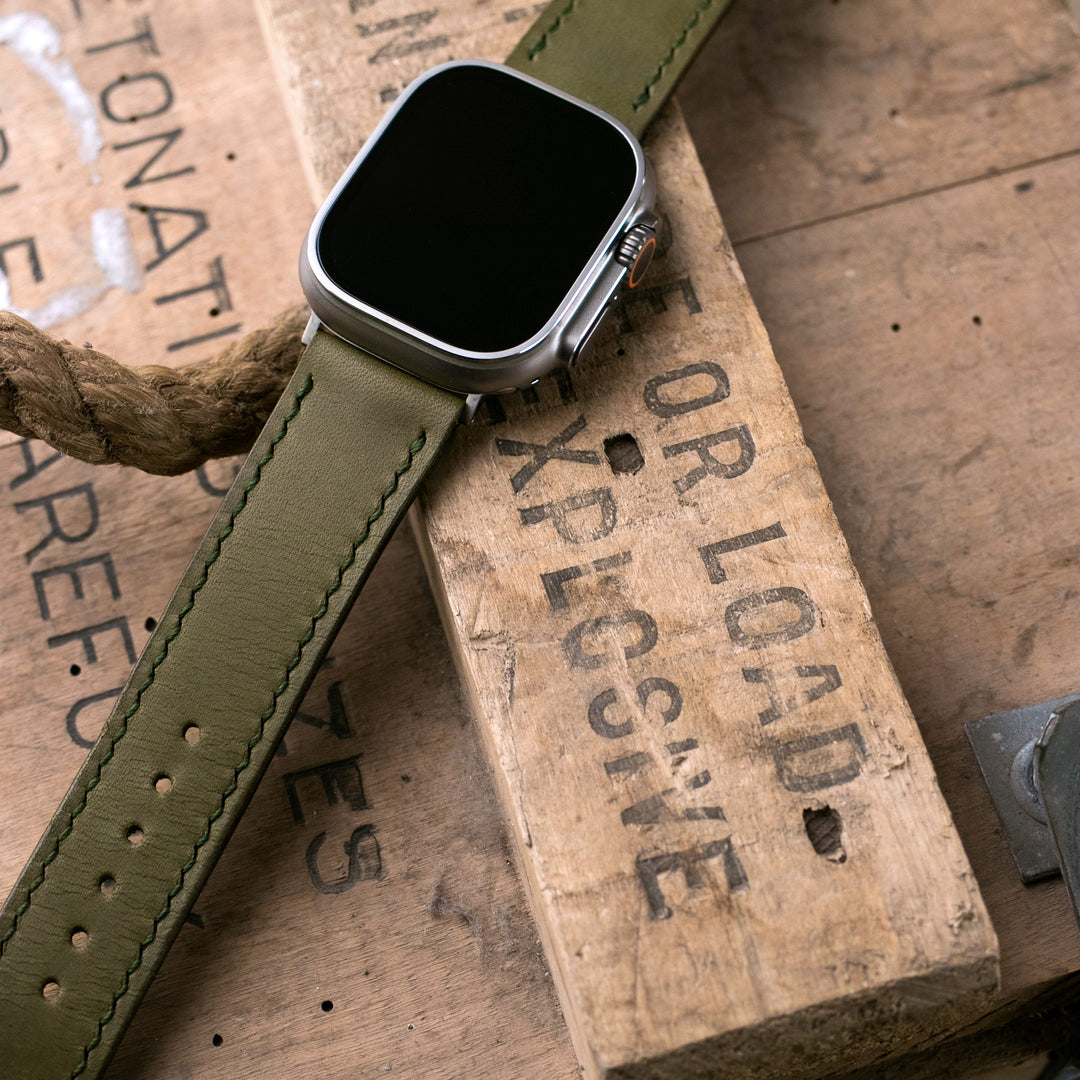 This handstitched design complements the look of Apple Watch series. It is made with a double layer of durable and elegantly aging leather.