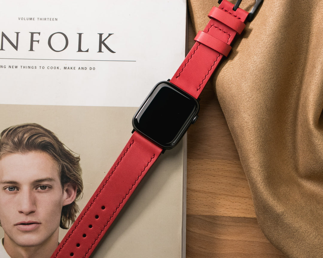 Custom Made VegTan Leather Watch Strap - Carmine