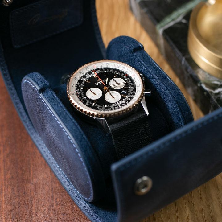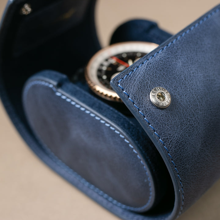 Watch Case - 1 Watch Blue Leather Roll