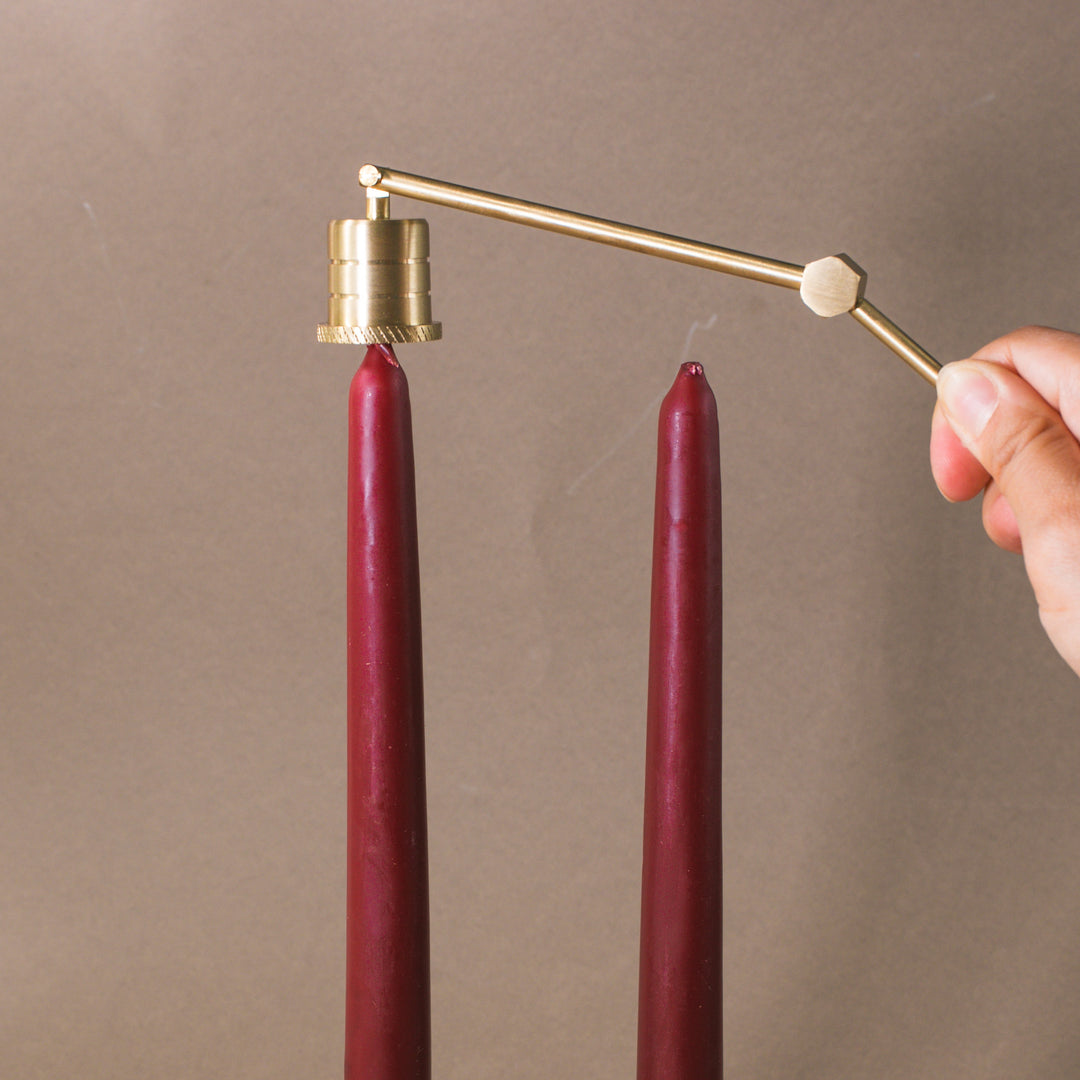 Perfect for candle enthusiasts, this brass snuffer is the traditional way to extinguish candles. When the molten wax has reached the edges of your candle vessel, use the candle snuffer to safely extinguish the flame. It’s a quick and easy way to extinguish your candles. The brass snuffer is designed for safety, as it keeps the hot wax from spilling onto your hands or clothes.