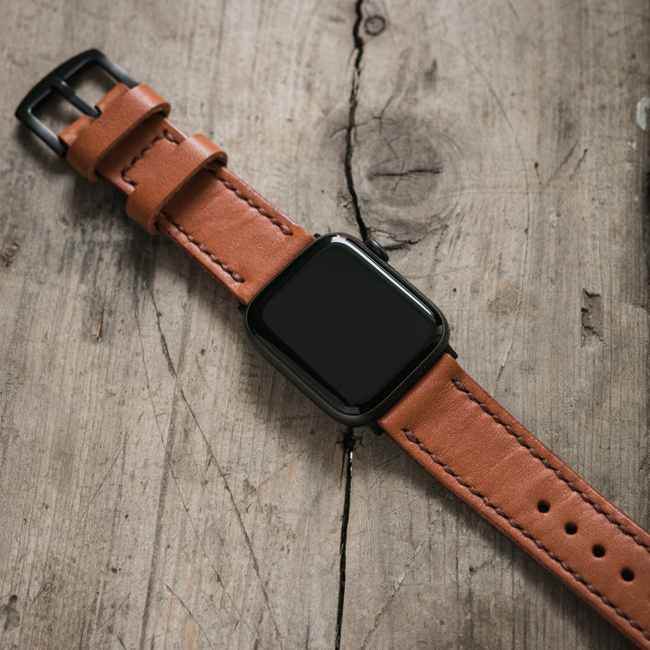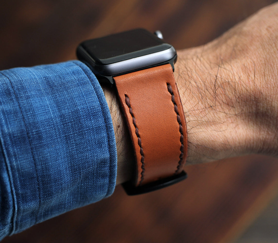 This handstitched design complements the look of Apple Watch series. It is made with a double layer of durable and elegantly ageing leather.