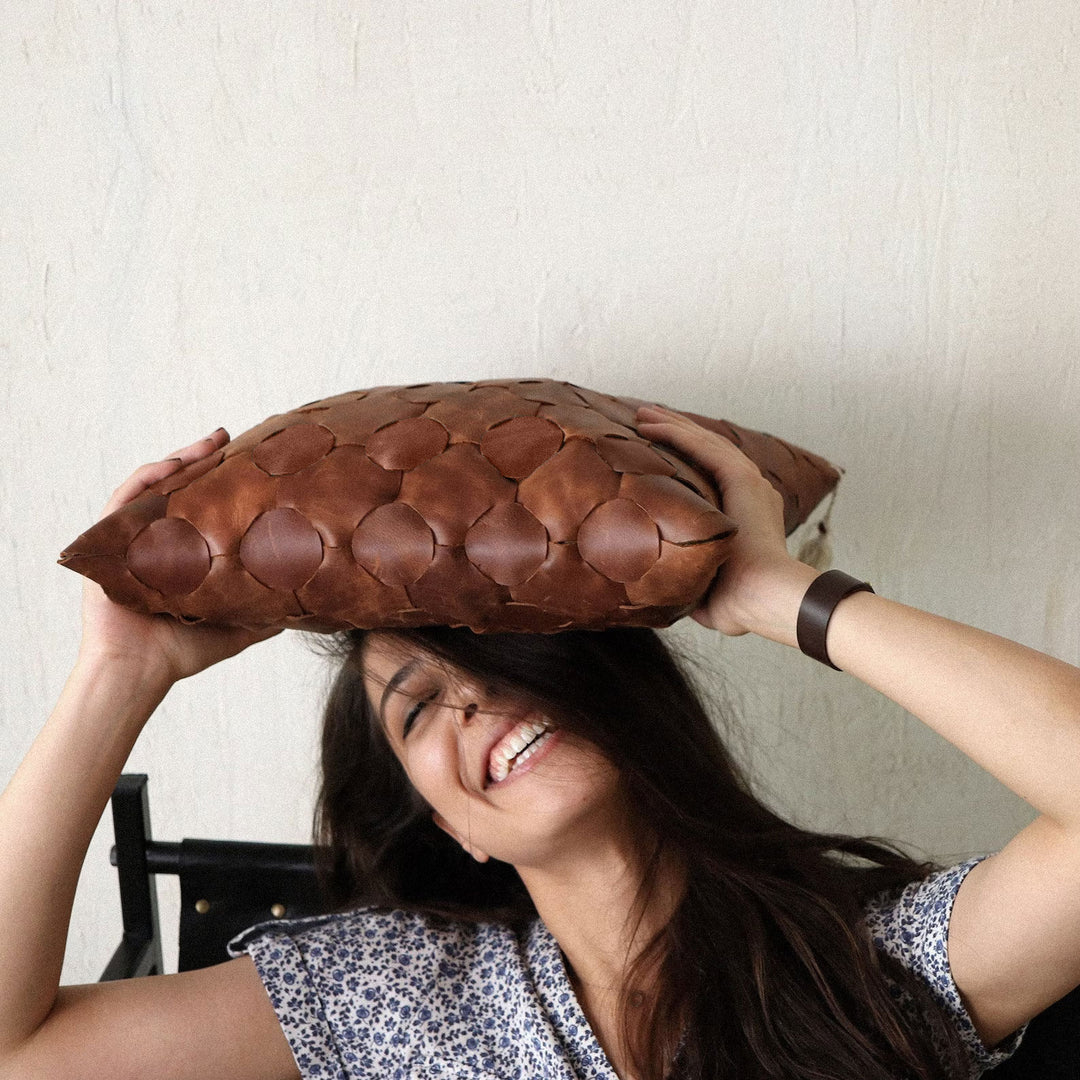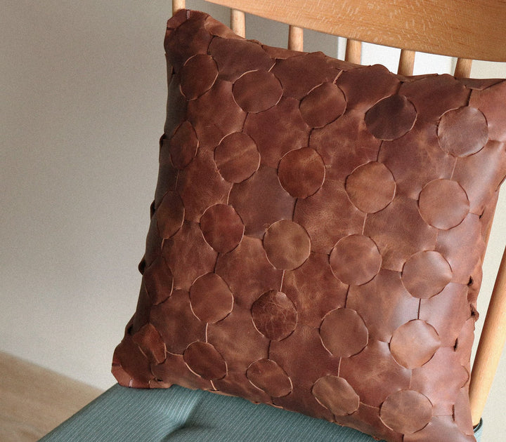 The boho-styled throw pillow looks classy and creative and has a sense of sophisticated whimsy. Leather pieces are interlocked to create the Anatolia Leather Cushion. The interlocking design is so seamless that it won't disassemble by itself, ensuring that you can enjoy the pillow for years to come.